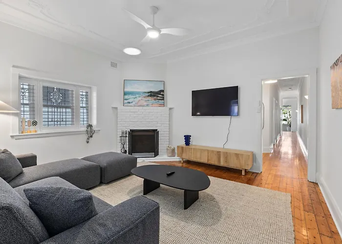 Bondi Beach Home For 8 With Terrace & 2-Car Parking Sídney, un apartamento de 239 m², está situado en el barrio Bondi de Sídney, a unos 7 km del Museo de la Policía y la Justicia, y tiene vistas al jardín. El apartamento cuenta con Wi-Fi y un aparcamiento privado gratuito para los huéspedes que viajen en coche.